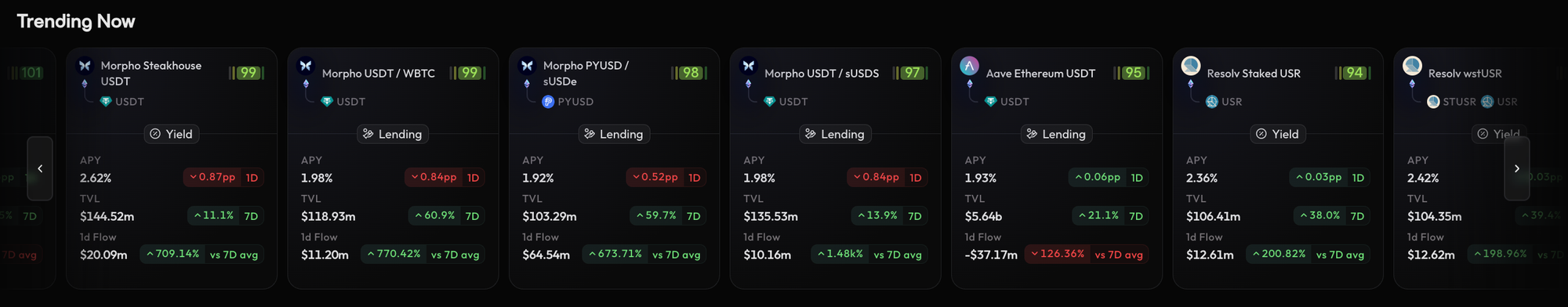 - Trending Now: Discover what's currently popular in the market, with real-time data on the most active vaults and strategies.