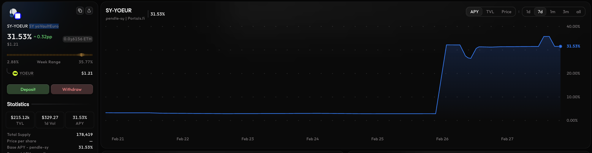 - APY: 31.53%