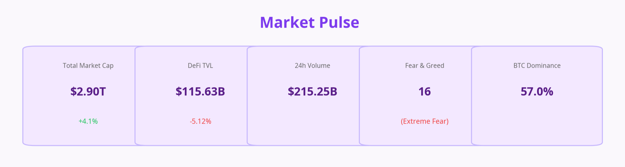 - DeFi TVL: $115.63B (-5.12%)