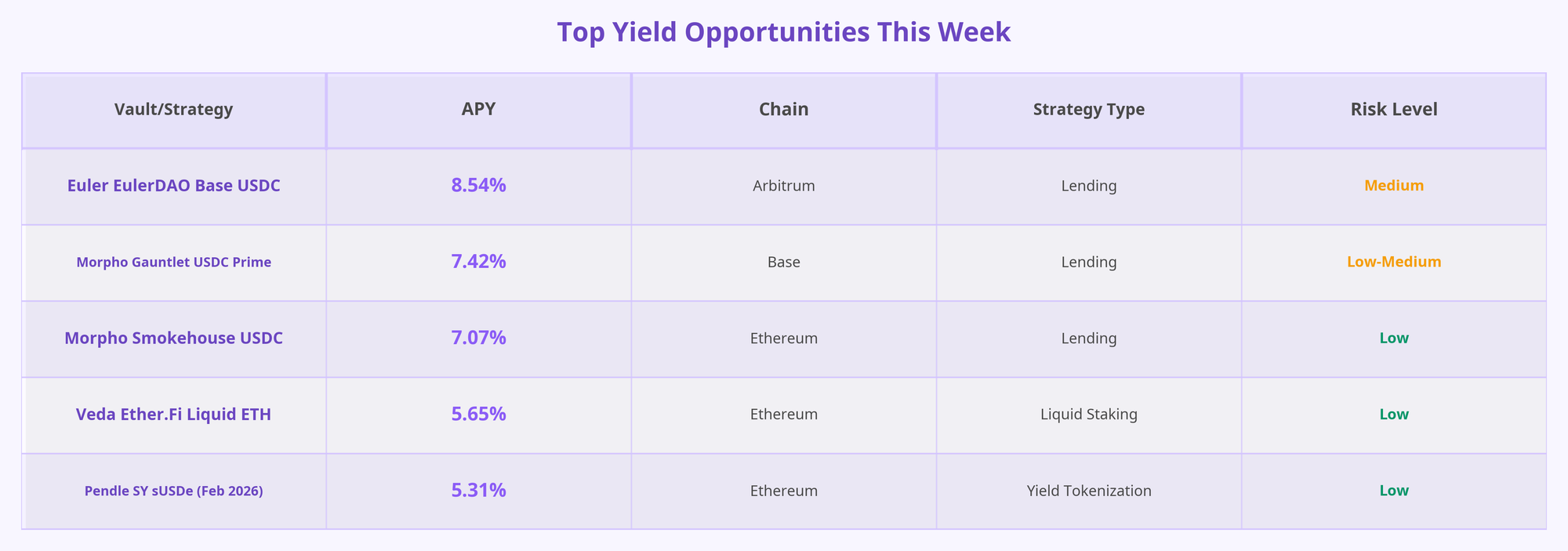 - Euler EulerDAO Base USDC - 8.54% APY, $40.53M TVL (Arbitrum)